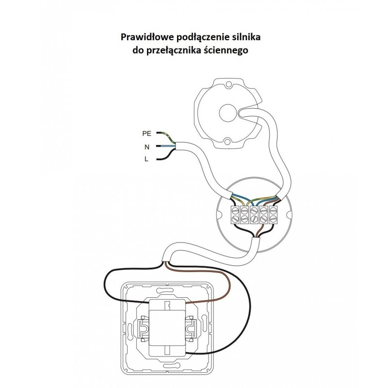 Przykład sterowania indywidualnego. Połączenia kablowe. Jest to rozwiązanie z użyciem najprostszych sterowań. Jedno sterowanie do jednej rolety. Możliwość zastosowania jakiegokolwiek wyłącznika żaluzjowego.